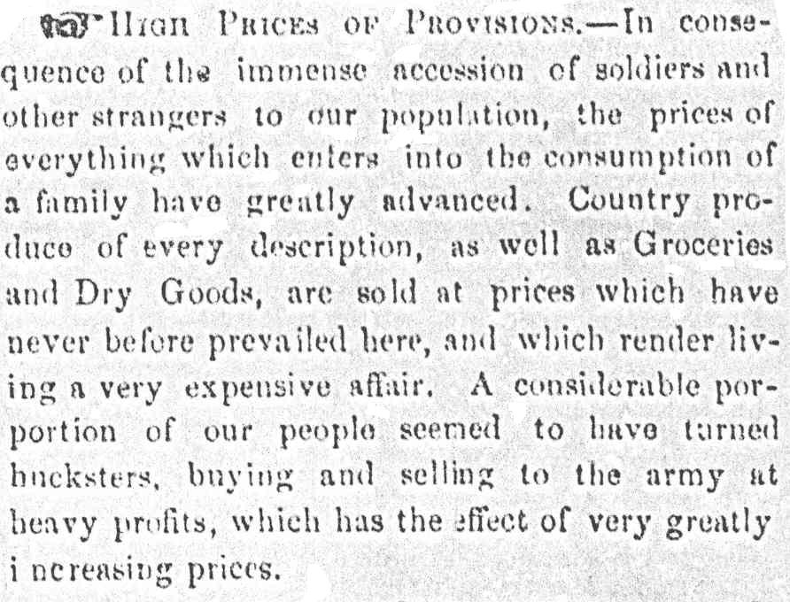 Cost of country produce and other goods has much increased due to influx of strangers and military, many local people profiting by selling to the army.