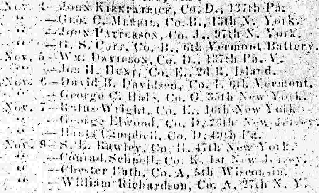 A long list of soldiers that have died in the hospitals in Hagerstown, with a few lines of poetry attached.