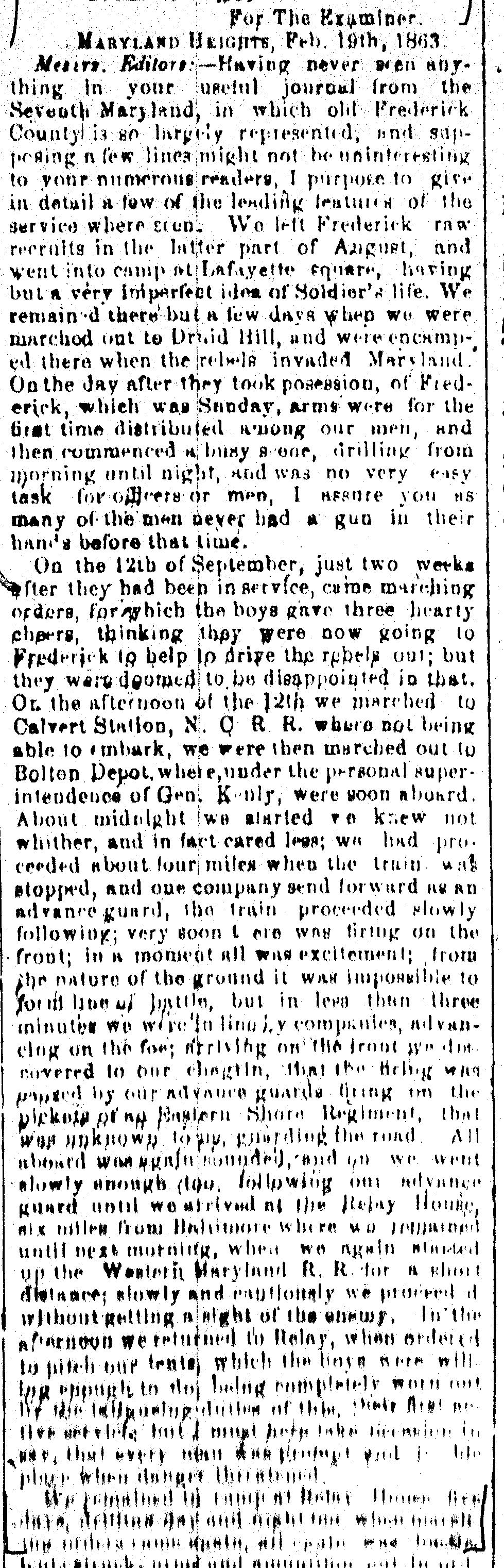 Maryland Heights, Feb. 19th, 1863