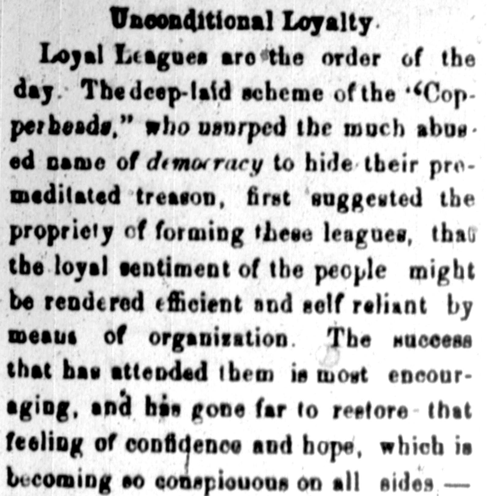 An editorial urging the formation of Loyalty Leagues in Maryland and an Unconditional Union party to defeat the "Copperheads" and noting that abolition of slavery can now be talked about in the Border states.