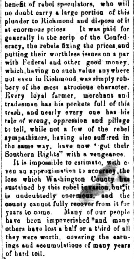 During July 13, 1863, skirmish between Kilpatrick's Cavalry and Rebels by Hagerstown, civilian Andrew Hagerman fired upon Rebels with his own gun; was wounded and died
