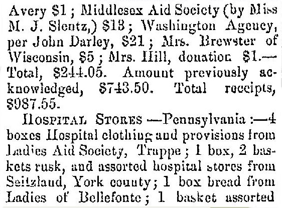 Receipt of donations of money and supplies from the U.S. Christian Commission to Gettysburg to Aug. 3, 1863