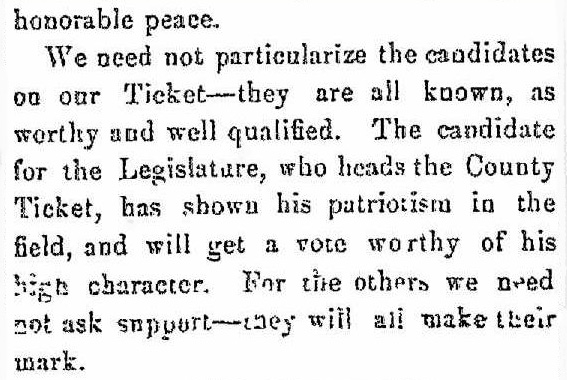 Article calls for those in Adams County to support the re-election of Gov. Curtin and the elections of those on the Union County Ticket.