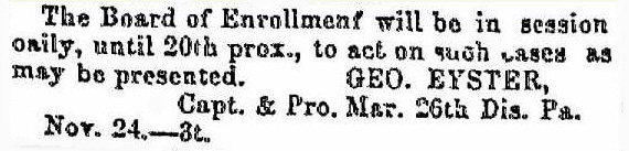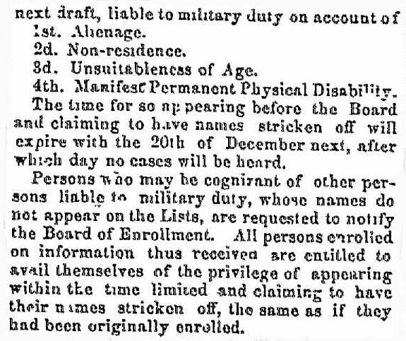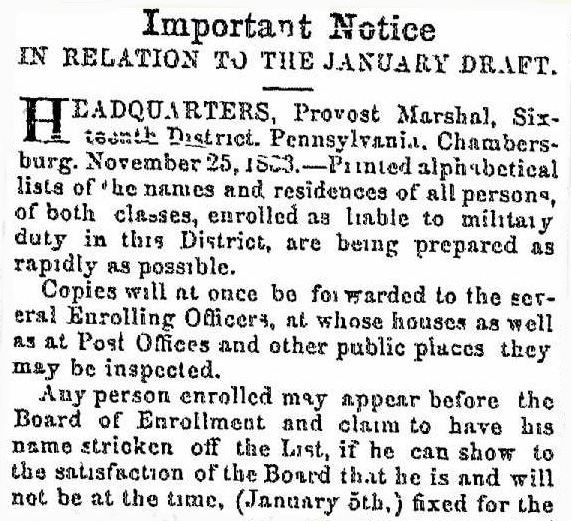 Military notice states that an alphabetical list of names and residences of those liable to military duty are being made.