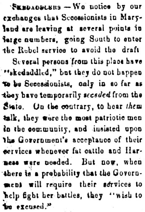 Several "Secessionists" in Maryland are going South to join the Rebels, but others have only "temporarily seceded from the state" in order to avoid the draft.